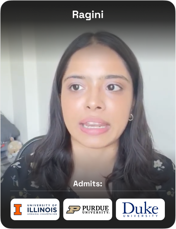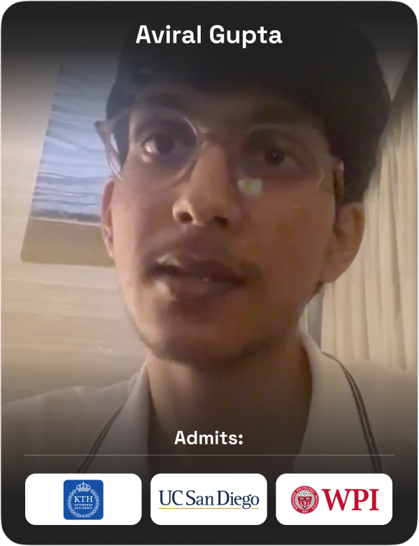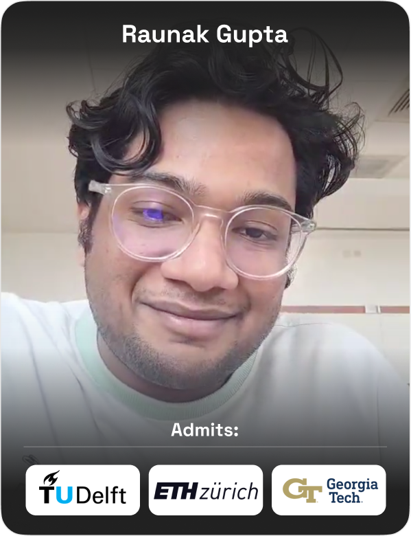 From helping me craft my SOPs and LORs to planning how to take the GRE and TOEFL, my counselor made the entire university application process much smoother. I received offers from six universities and was admitted to my dream university.
