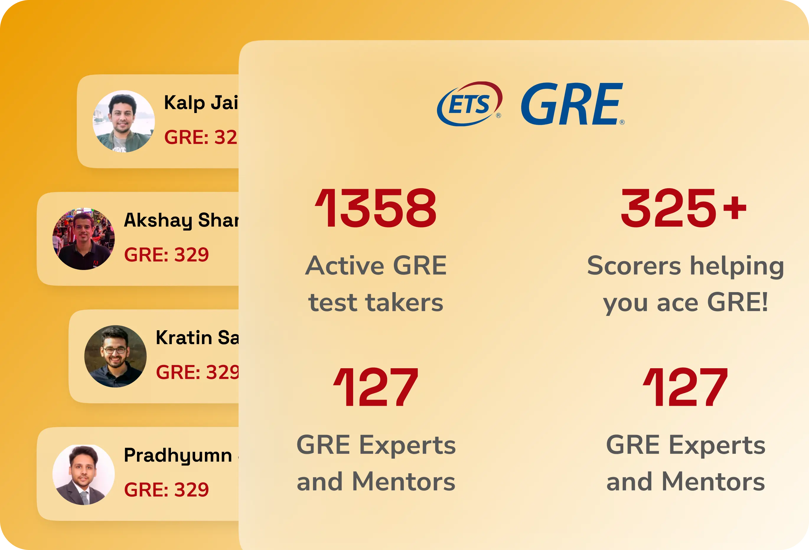 Are you ready to conquer the GRE exam and achieve a remarkable score of 330 or more? Join a vibrant community of 1,358 active GRE test takers who are here to guide you on your journey to success. We understand that achieving top scores requires top-notch strategies, and that's where our GRE experts and mentors come in.