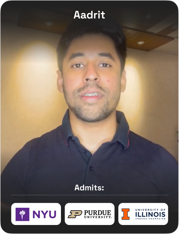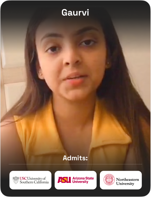 From helping me craft my SOPs and LORs to planning how to take the GRE and TOEFL, my counselor made the entire university application process much smoother. I received offers from six universities and was admitted to my dream university.