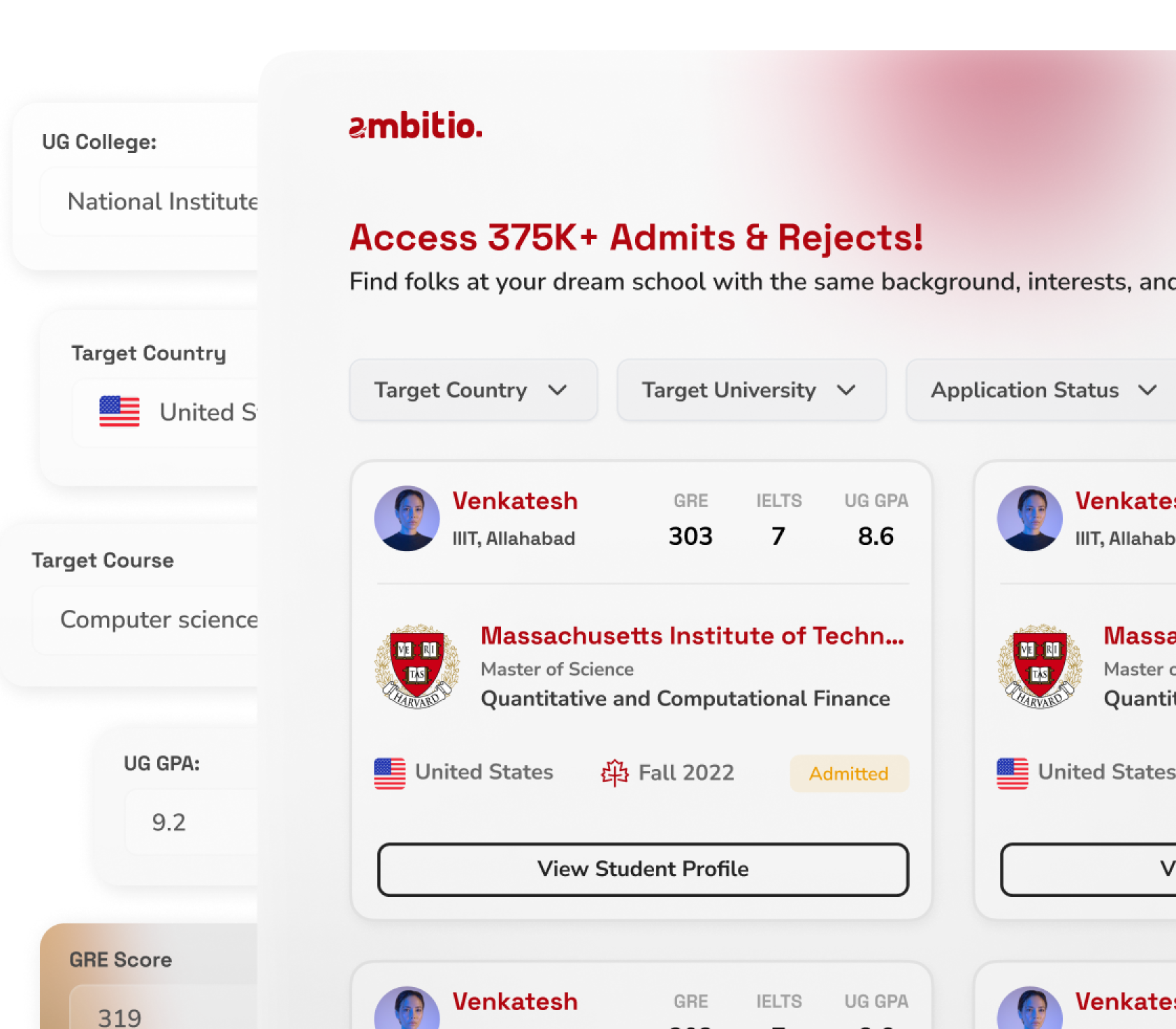 Ambitio students have 10x higher chances of getting into top universities with expert guidance and AI-powered tools