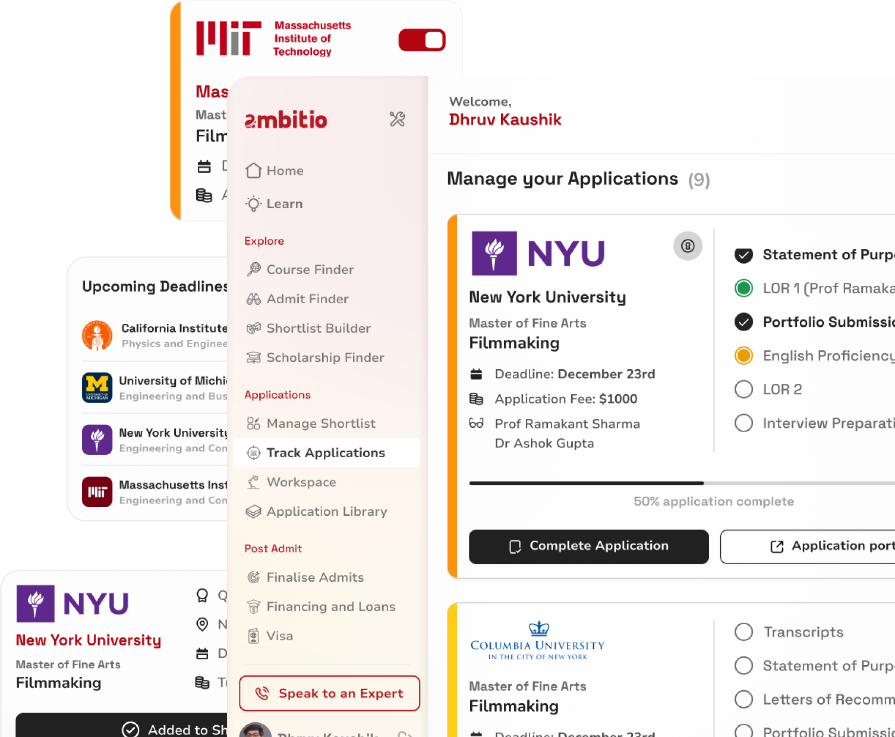 Ambitio pushed me to be more ambitious and relentless in achieving my dream admits. My mentor helped me streamline the process and went over and beyond to ensure my applications stood out.