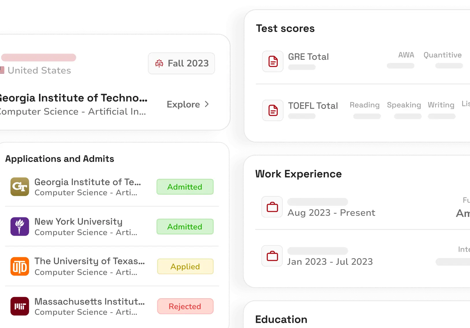 Admit Finder let's you explore profiles of previous admits to universities worldwide, helping you make an informed decision tailored to your academic profile and preferences